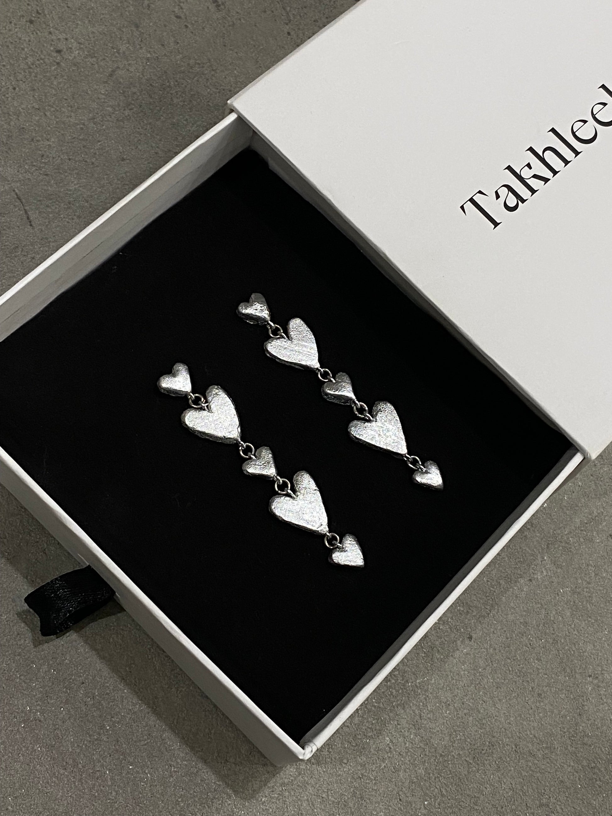 Six dangling heart earrings