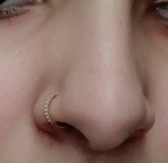 the nose ring is gorgeous, i really love how lightweight yet shiny it is, the steal and the hook quality is very commendable, very easy to wear and carry on daily basis. One thing that i love the most about it is the very beautiful gold colou, its not very golden which looks tacky on the skin, best for olive and wheatish skin tones.
