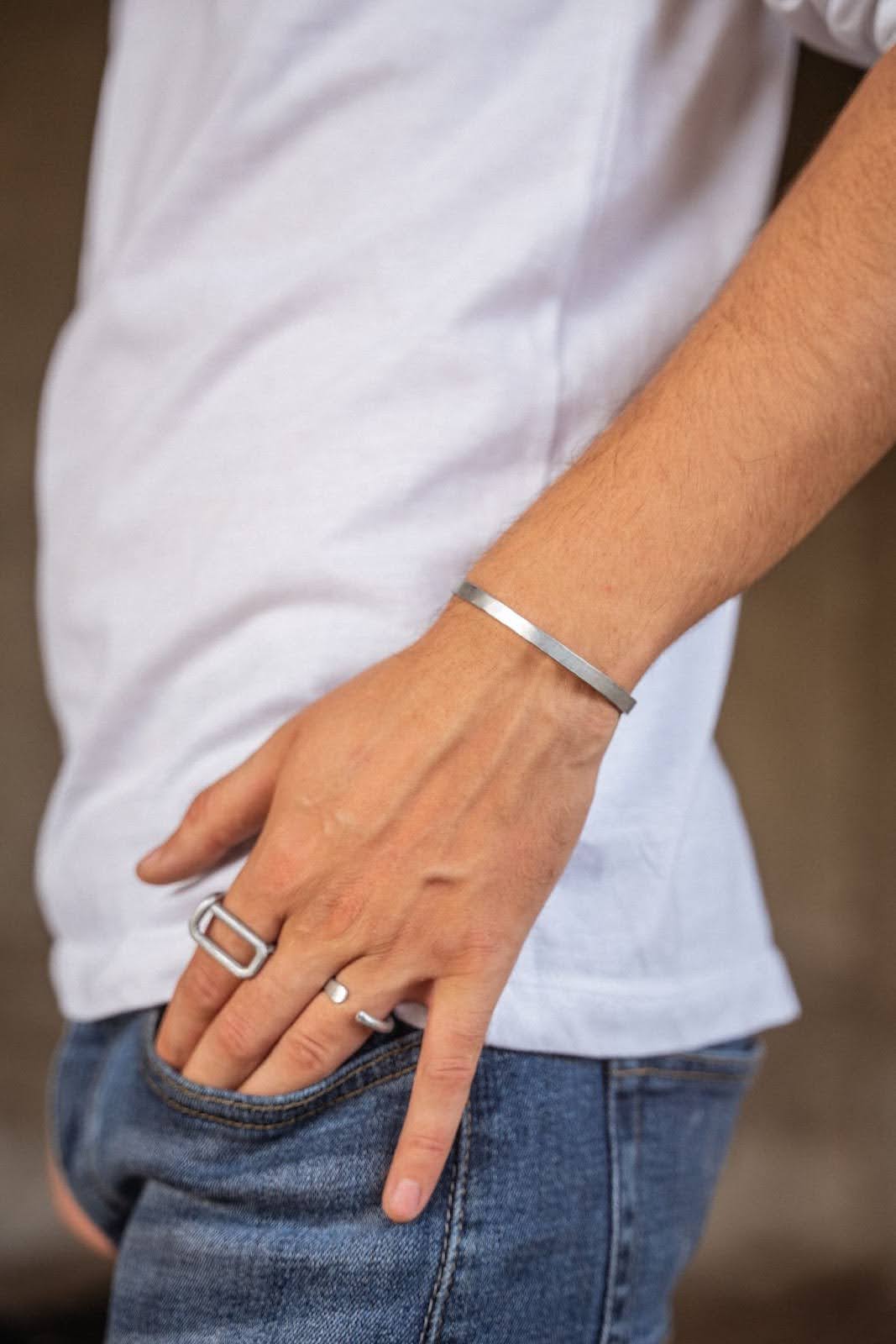 Flat silver wire bracelet unisex